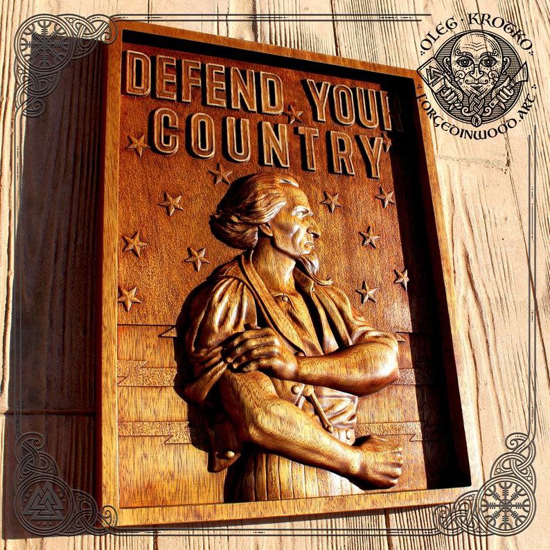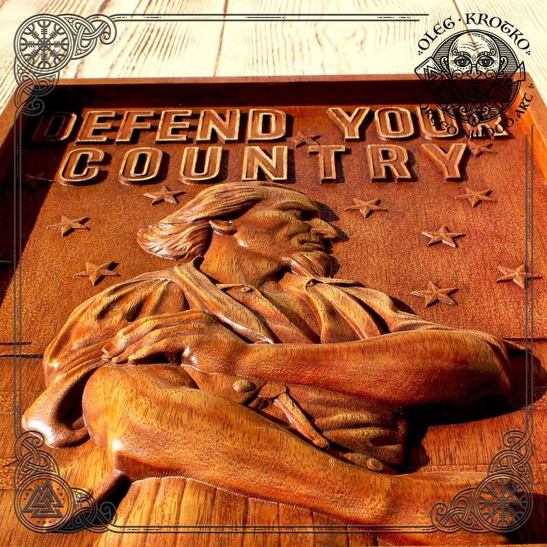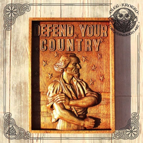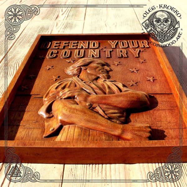 Transform your home into a sanctuary of honor and pride with this exclusive handcrafted wooden wall art by acclaimed wood artist Oleg Krotko. “Defend Your Country” is not just a decoration; it’s a powerful statement of strength and national pride.