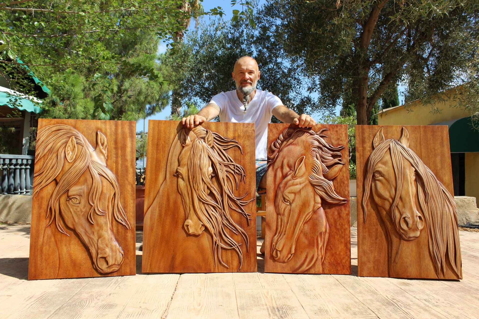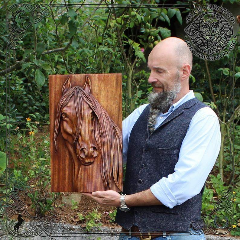 Be the first to review “Carved Wooden Horse Portrait, Wood Relief Wall Decor, Oleg Krotko”