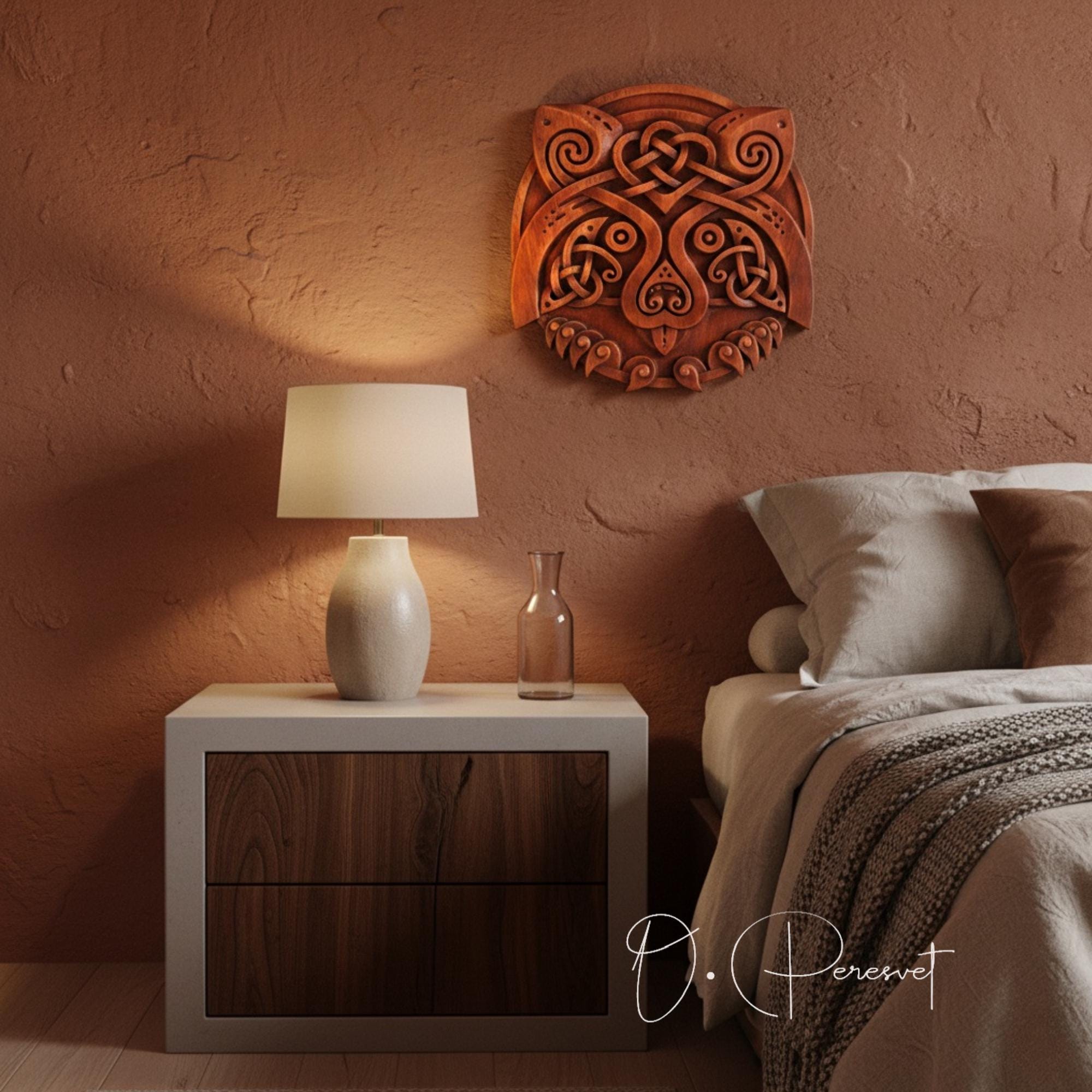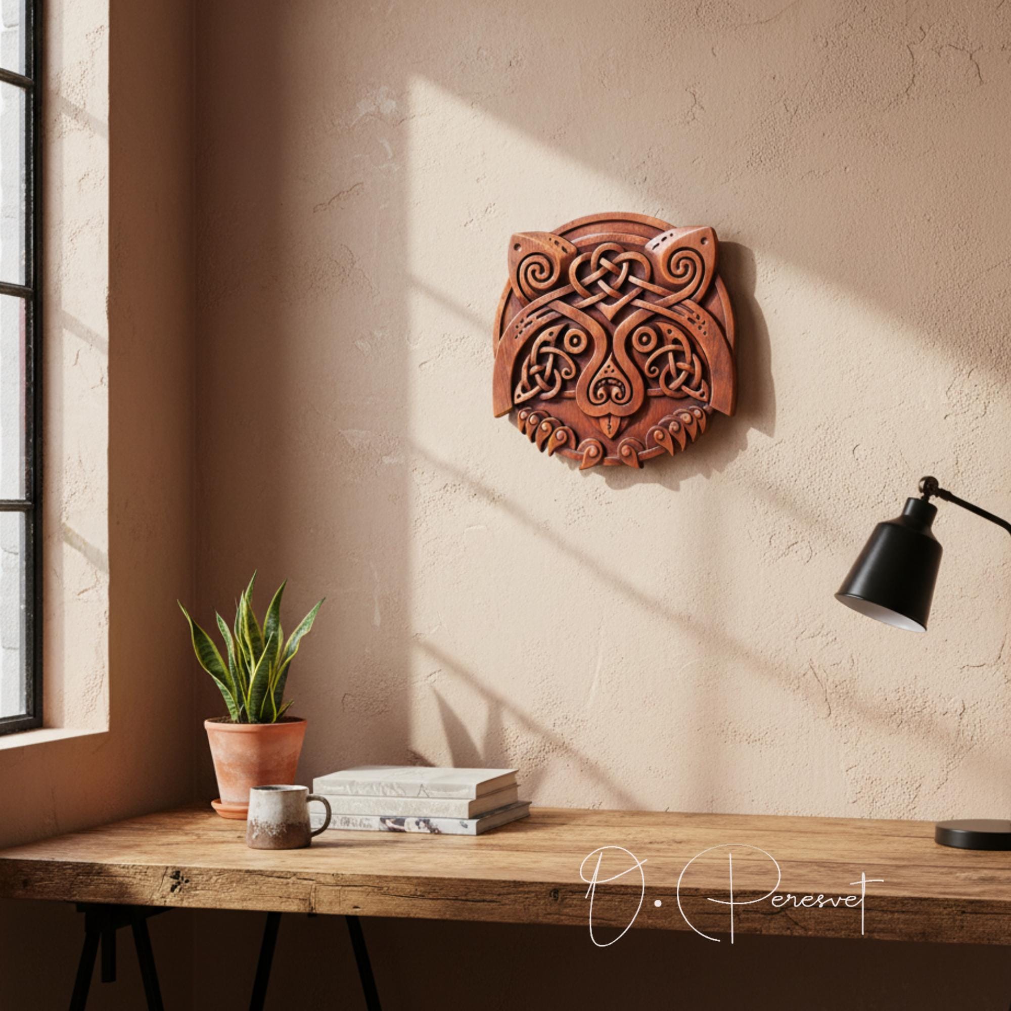 In folklore, the Raccoon symbolizes curiosity, cleverness, and the ability to adapt. With its iconic mask, it stands for secrecy and protection. Merged with intricate Celtic knotwork, this carving is a tribute to the hidden magic of the woodlands. This hand-carved Iroko wood plaque is not just decor; it's a powerful and unique piece of Animal Spirit Art. Perfect for the collector who values depth, symbolism, and a bold, mysterious aesthetic.