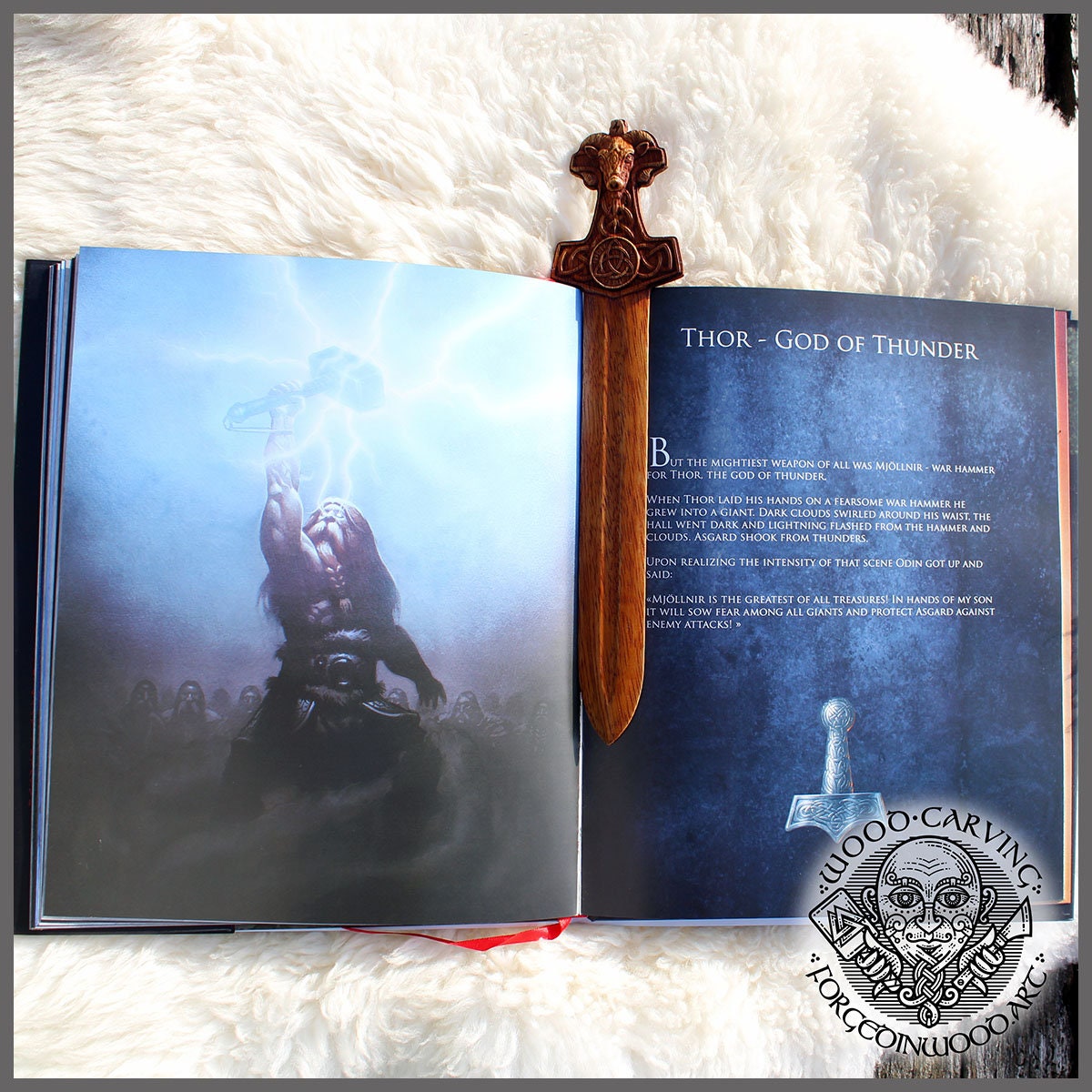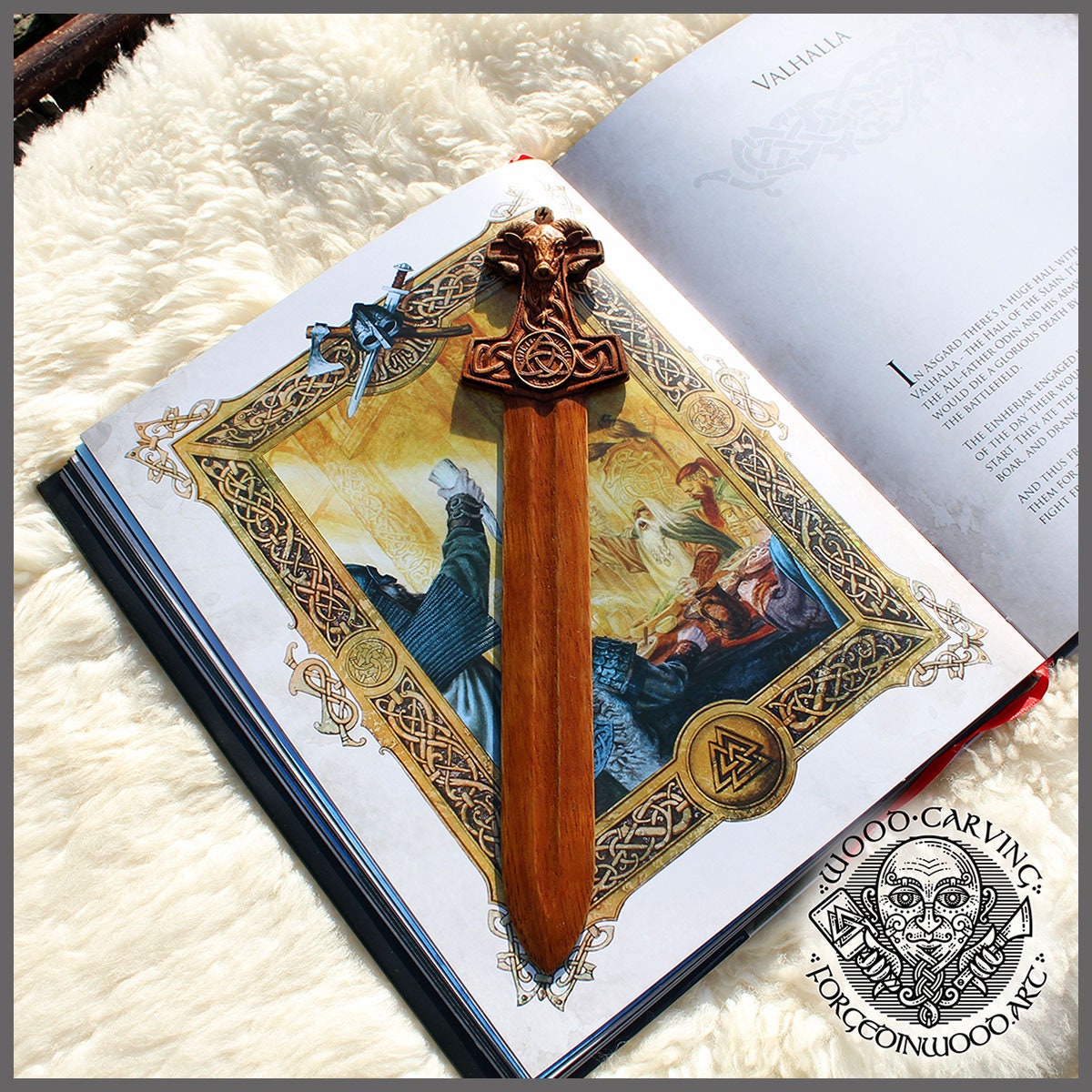 Hand Carved Iroko Wood Bookmark – Viking Sword Page Holder