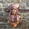 Iroko Wood Carved Native American Shaman Portrait, Pagan Decor