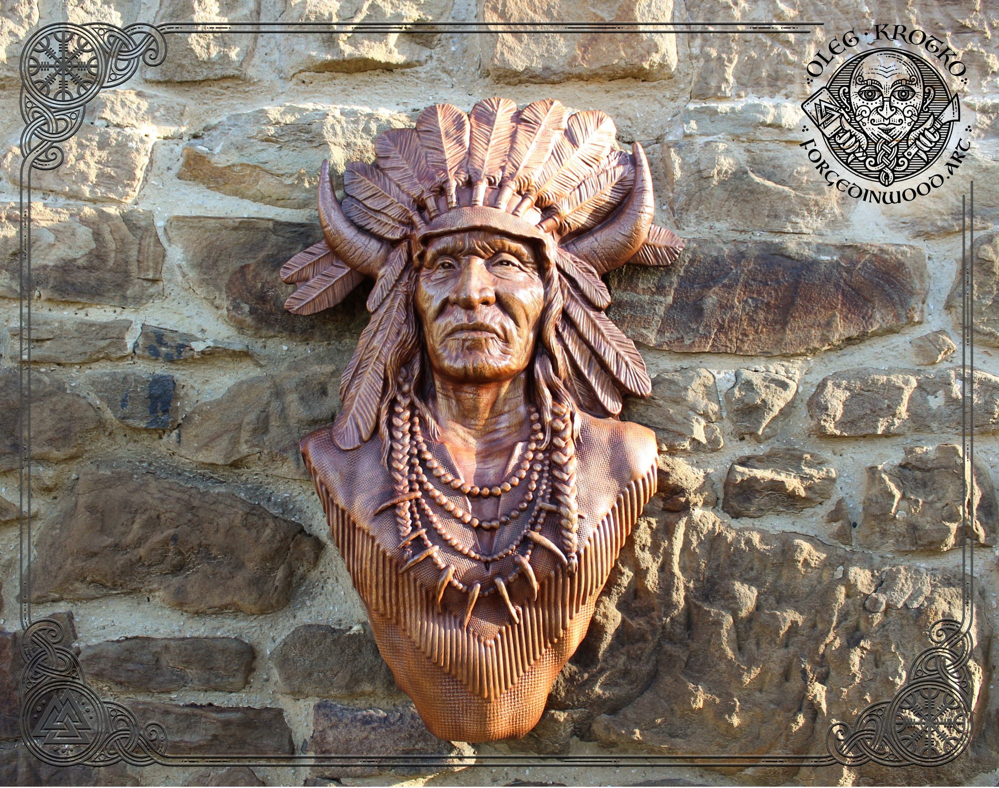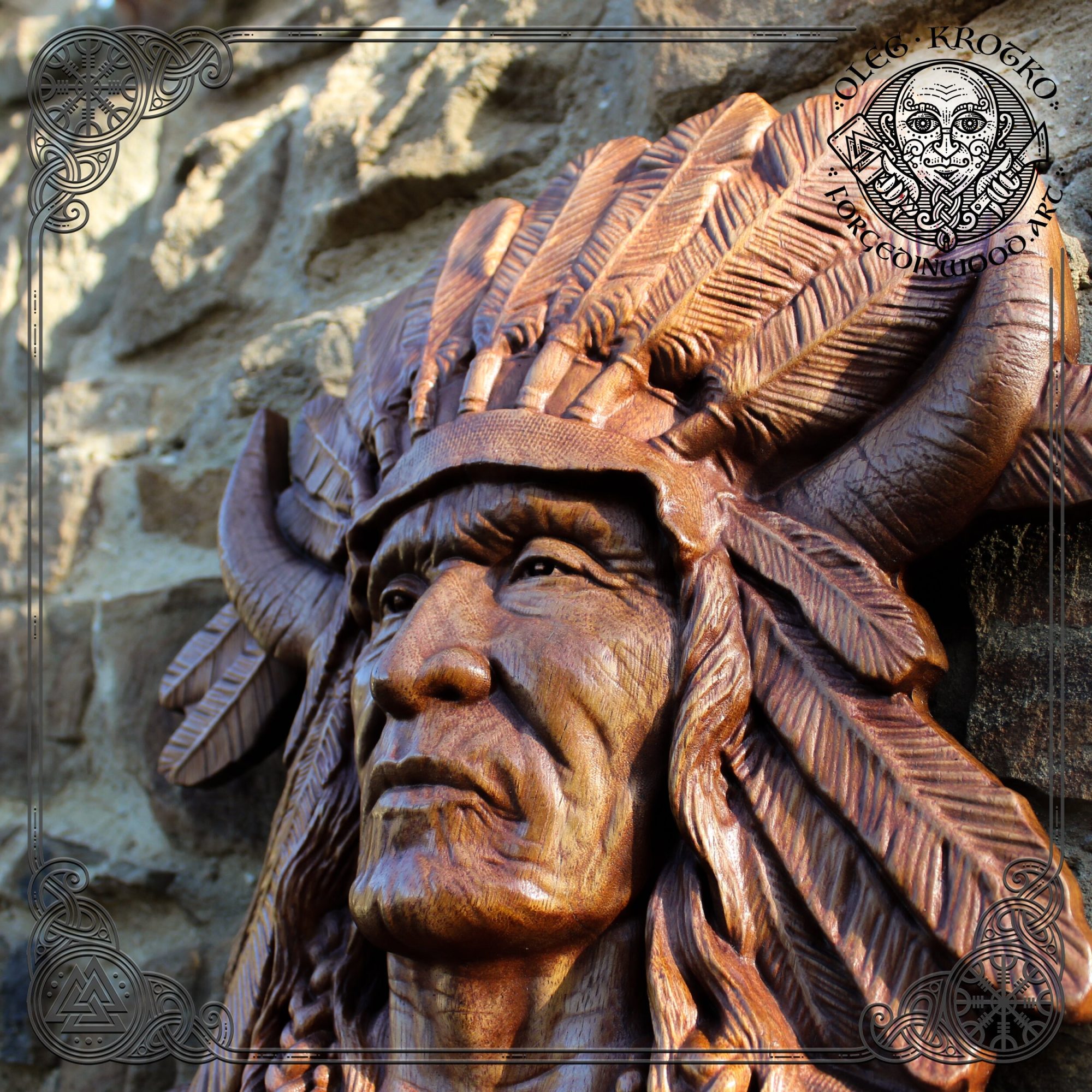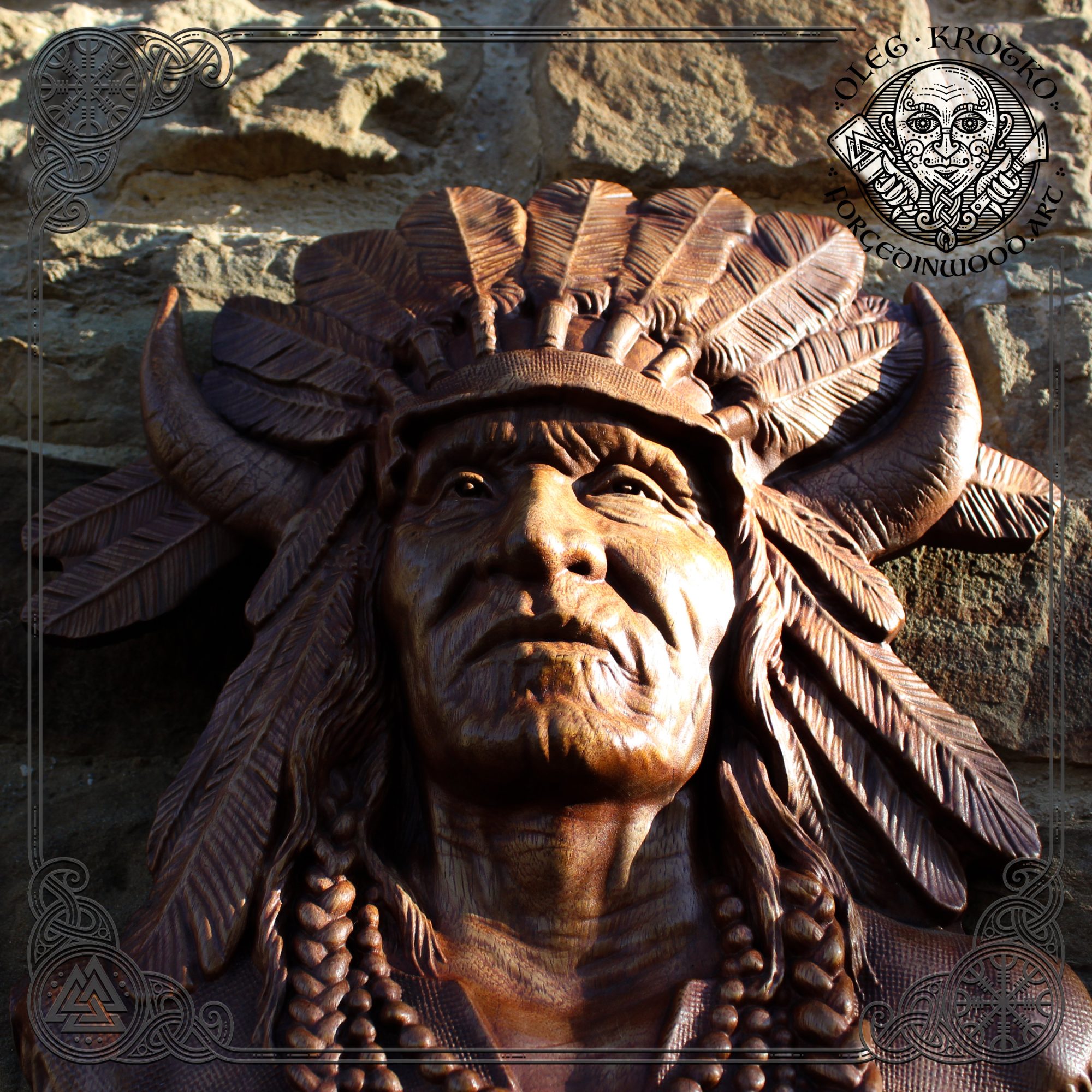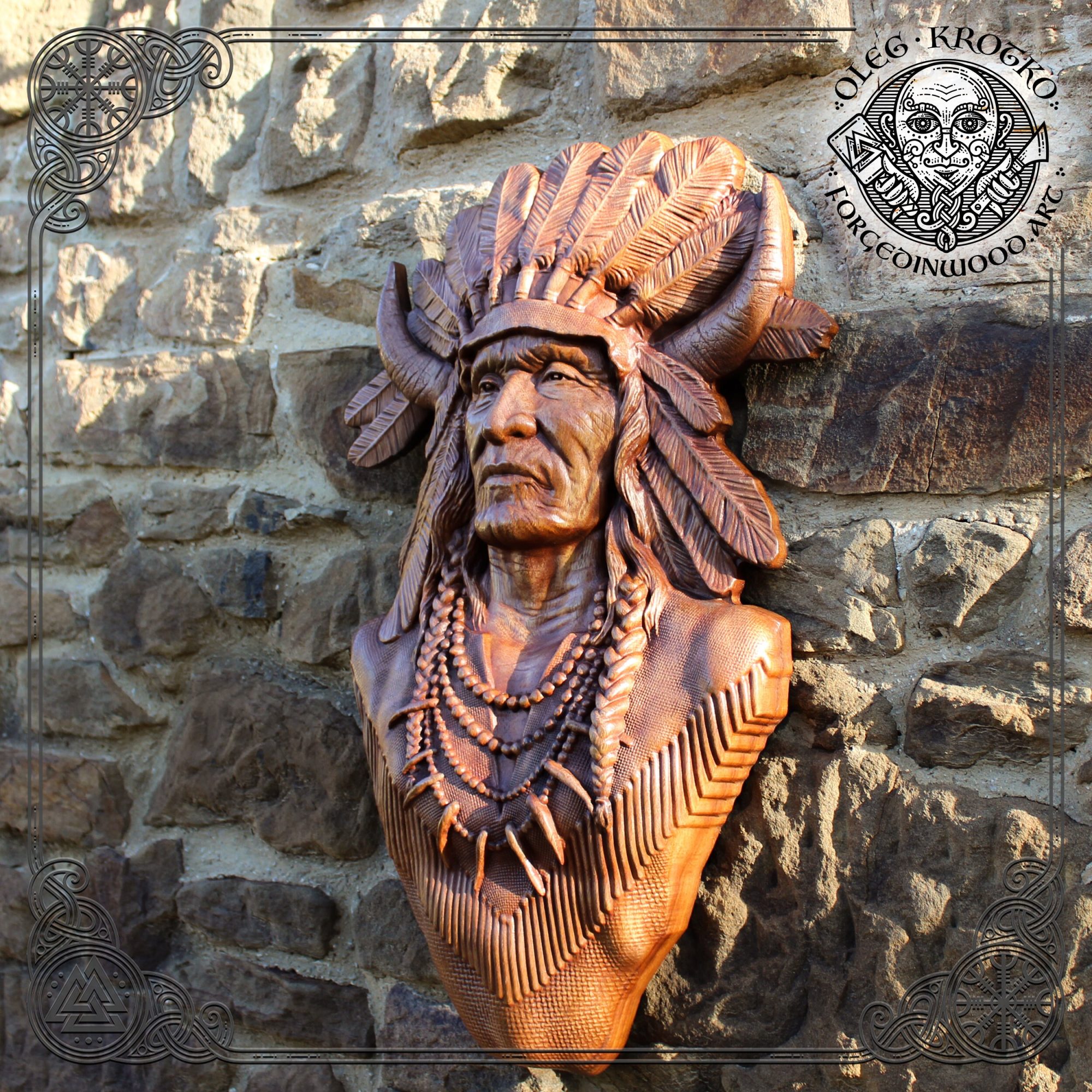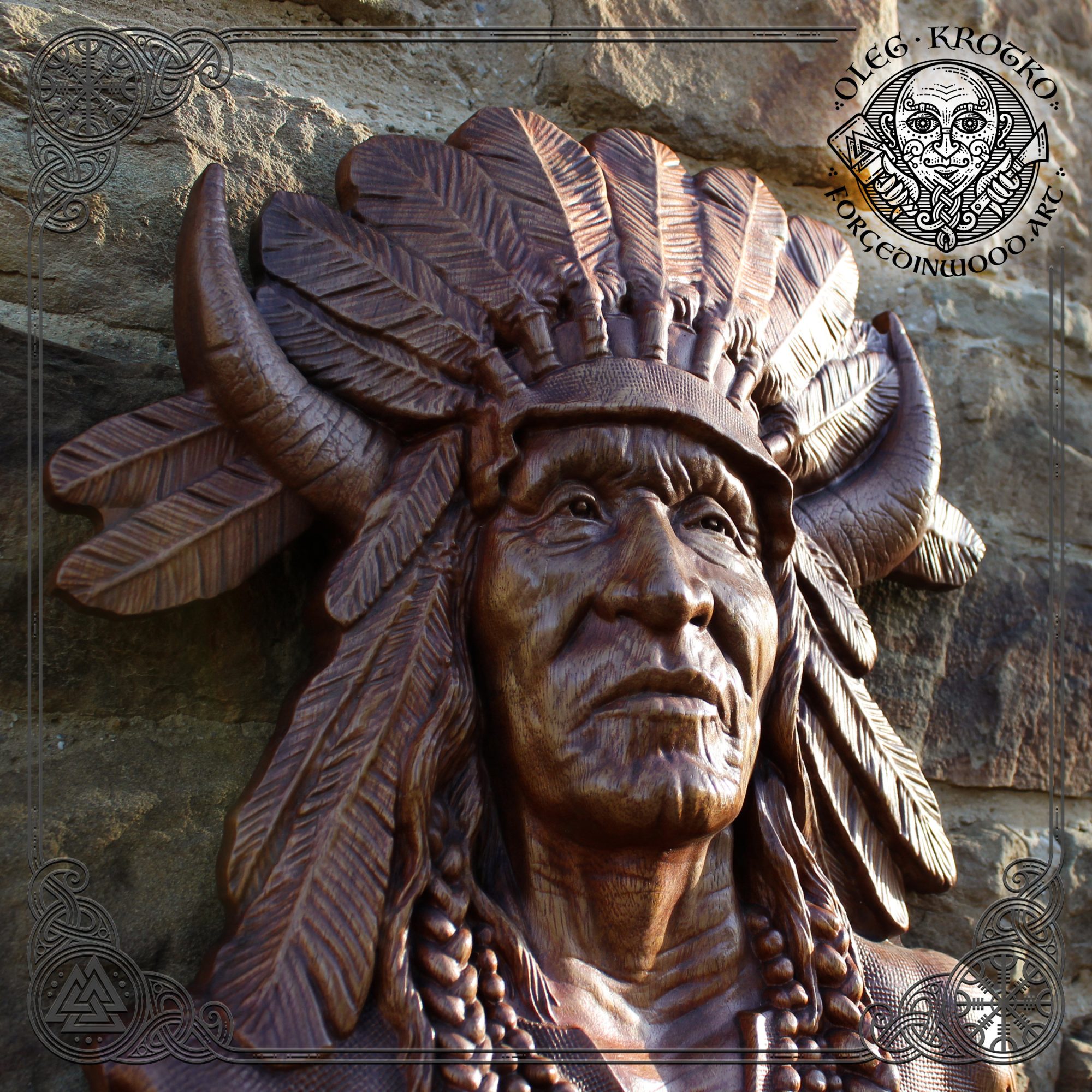 WOOD CARVED PICTURE “Native American”.
