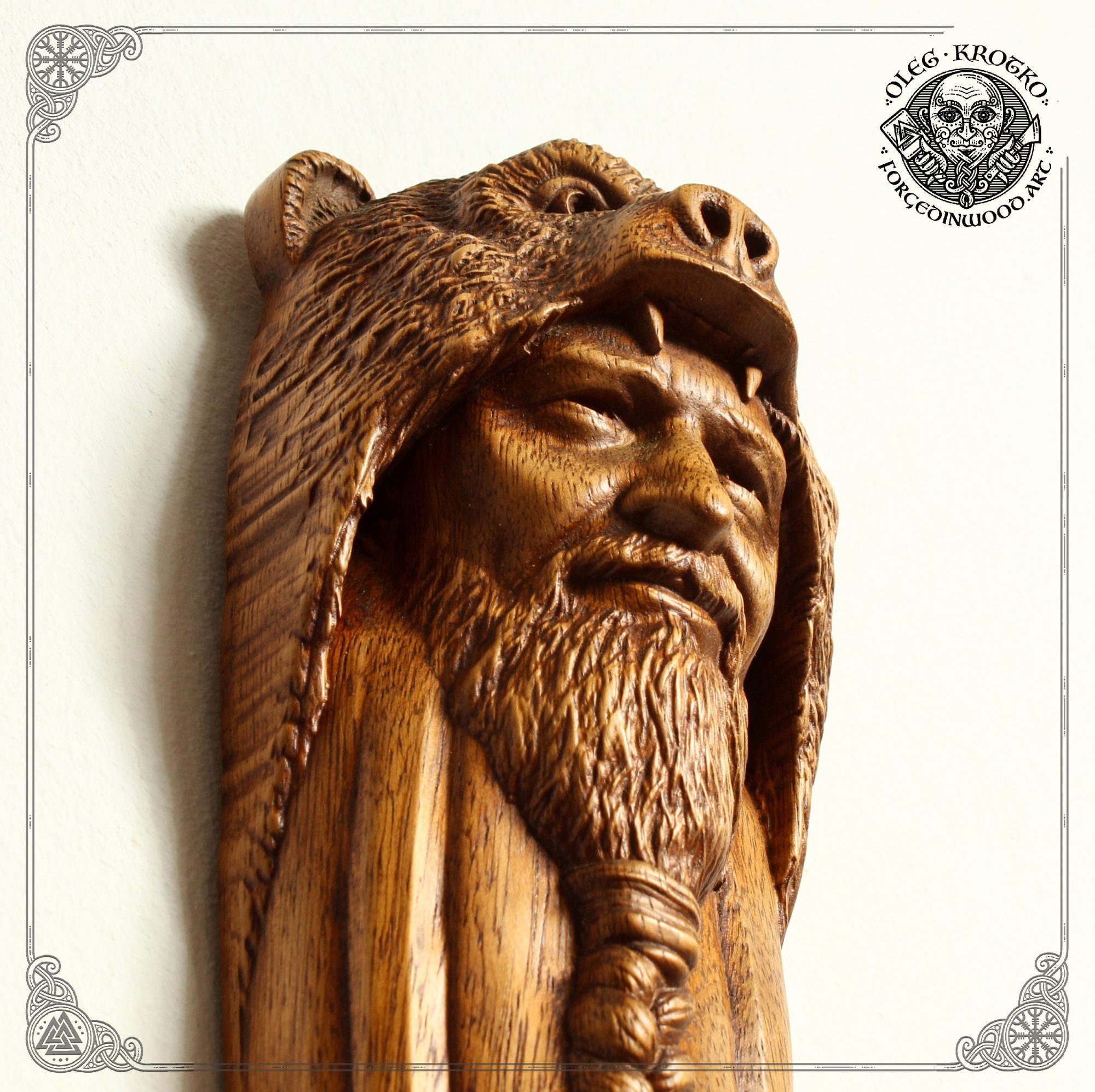 Iroko Wood Carving, Shaman Portrait, Norse Pagan Wall Art