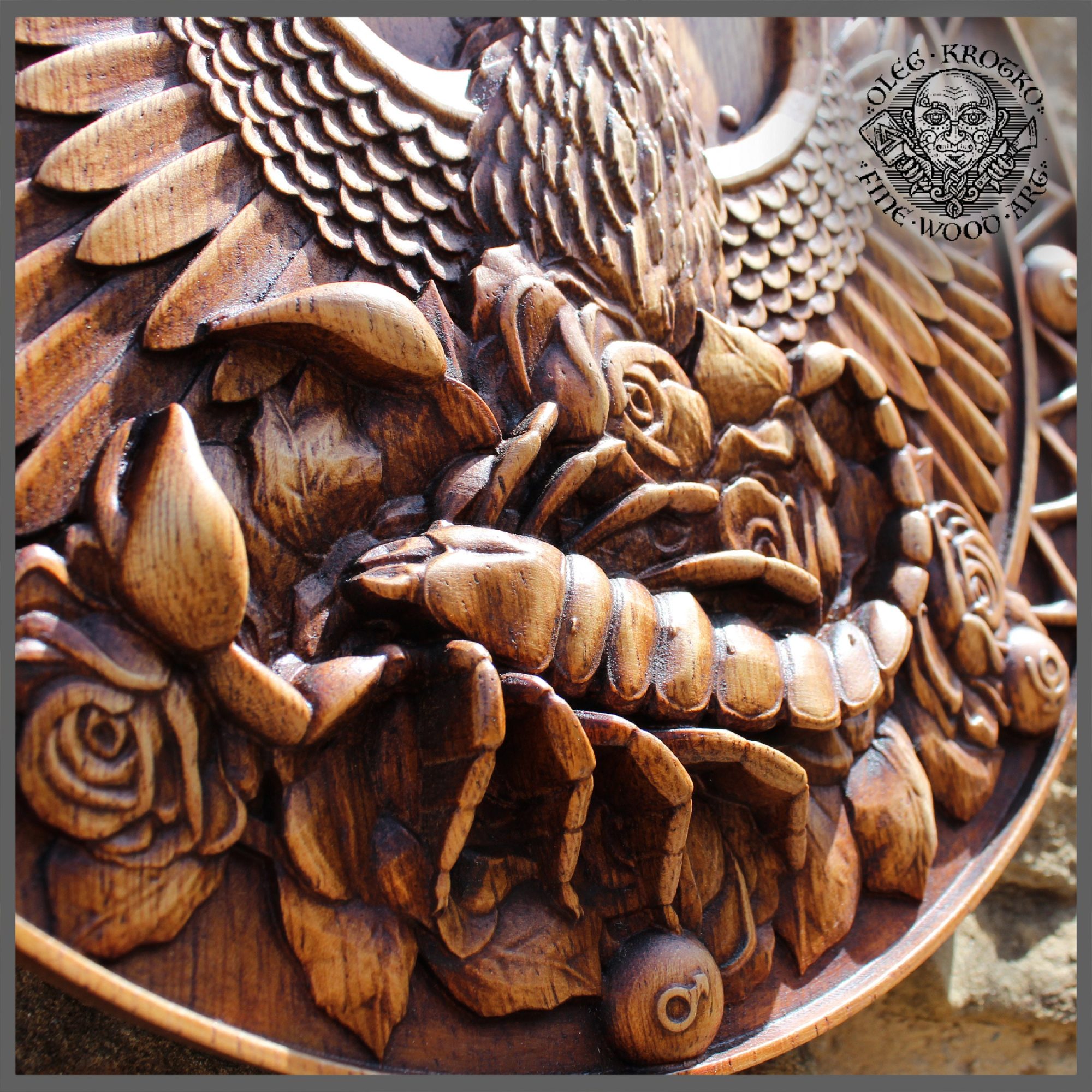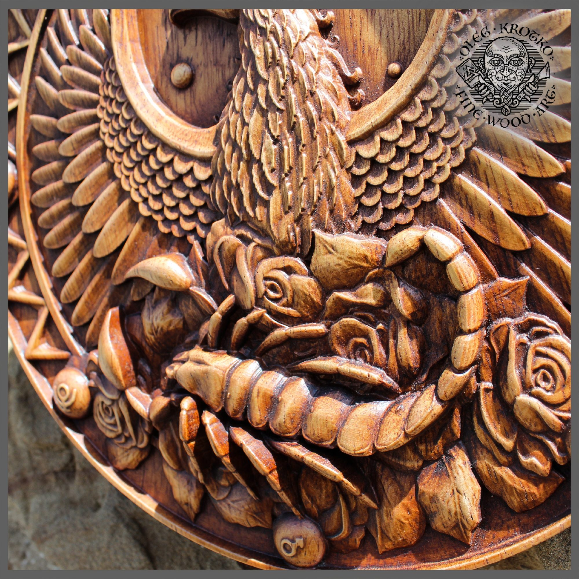 All works are carved from all-natural, luxurious wood, including oak, chestnut, ash, iroko, and jatoba and are sealed with non-toxic antique wood wax. I never use any harmful chemicals in my work, so you can be sure that all carvings are safe and produced with the environment in mind. My style channels an old-world, antique feel, so my work is perfect for those who enjoy vintage décor and ancient artifacts.