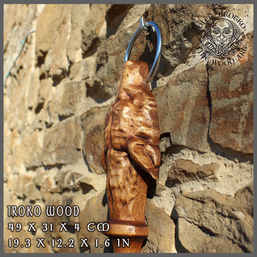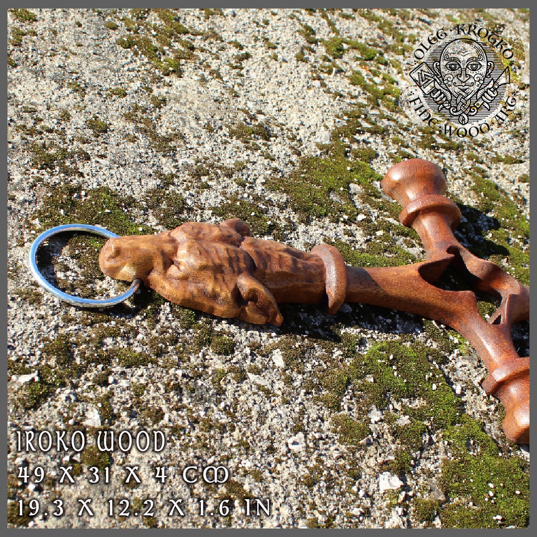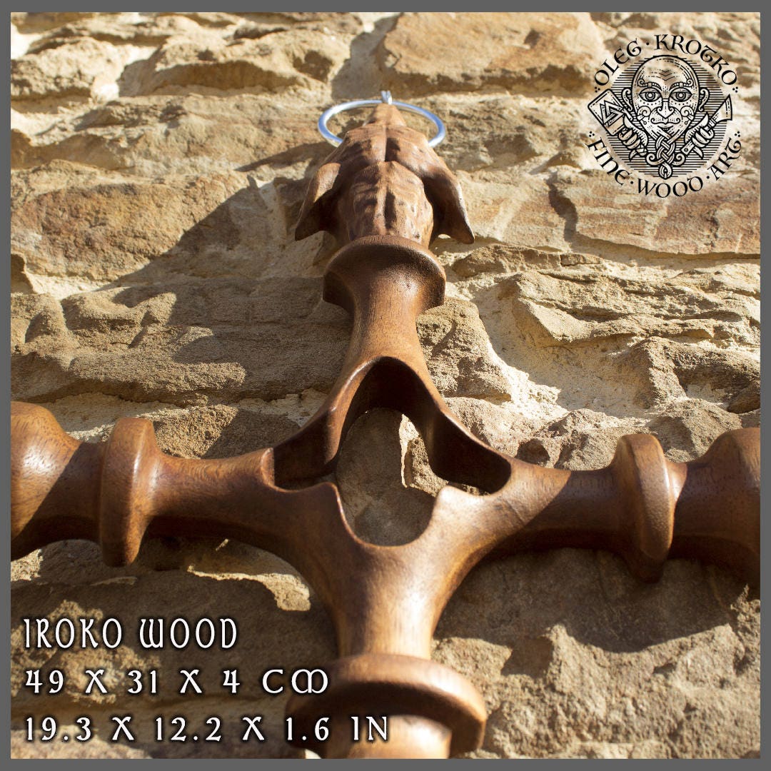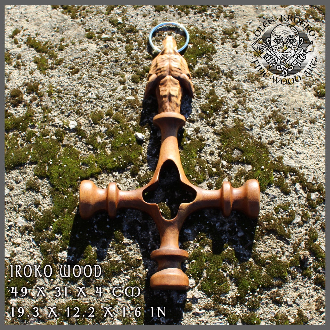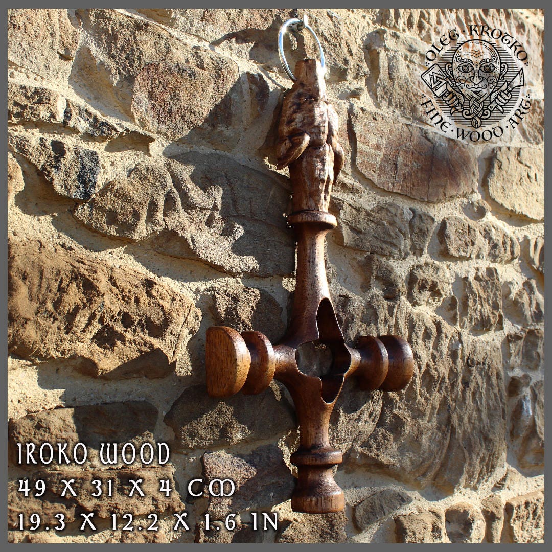 Wolf Cross Wood Carving, Norse Viking Decor, Iroko Wood