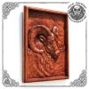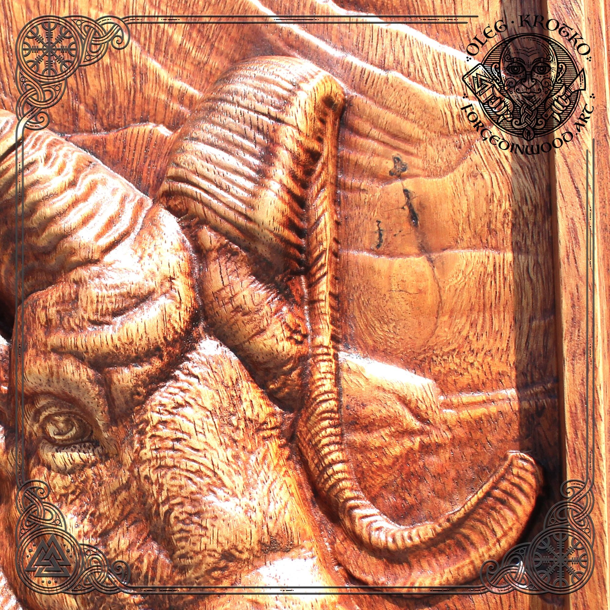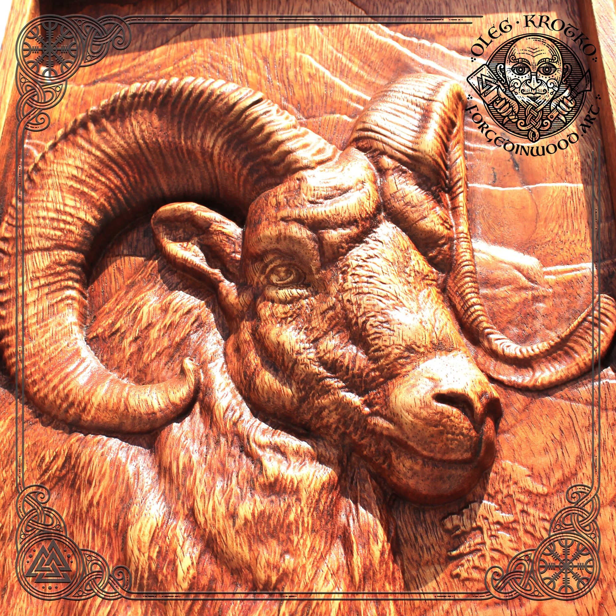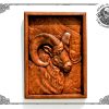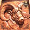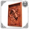 Wood Carved Ram Portrait, Iroko Wildlife Wall Art (16×11 in)
